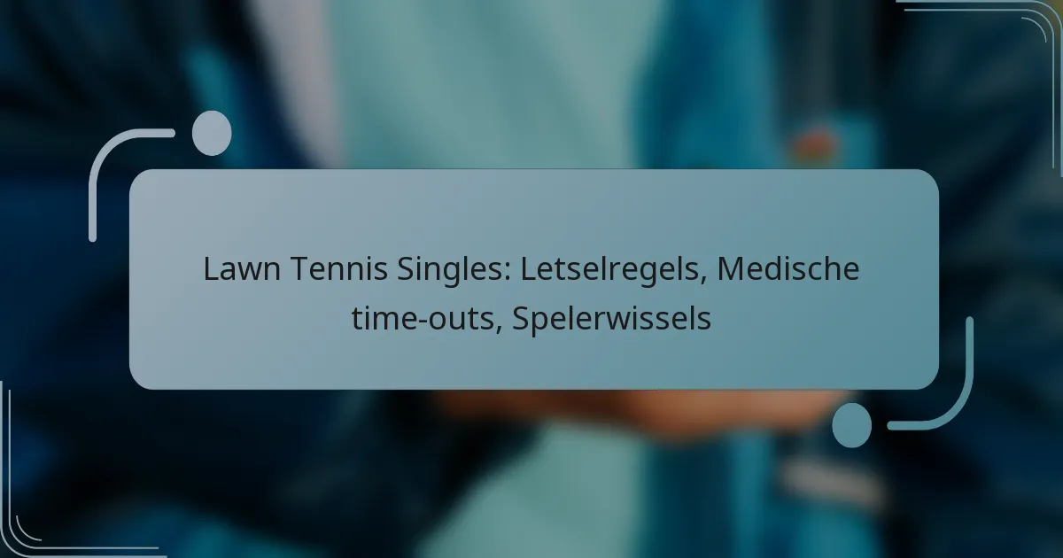 In het enkelspel van lawn tennis zijn de regels omtrent blessures cruciaal voor het waarborgen van de veiligheid van spelers en de integriteit van de wedstrijd. Ze beschrijven wat kwalificeert als een blessure en de bijbehorende beoordelingsprocedures. Medische time-outs bieden spelers de mogelijkheid om noodzakelijke medische aandacht te ontvangen, hoewel deze pauzes strikt gereguleerd zijn om eerlijkheid te waarborgen. Het is belangrijk om te benadrukken dat spelerswissels niet zijn toegestaan; atleten moeten de wedstrijd beëindigen, tenzij ze door een blessure of ziekte niet in staat zijn om verder te spelen, in welk geval ze gebruik kunnen maken van medische time-outs.